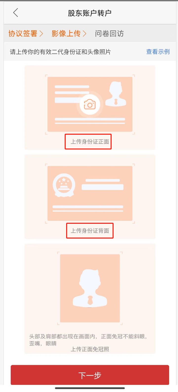 最后上传身份证,即可新开股东账户: