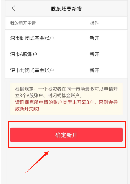 在股东账户管理页面,选择“增开”,