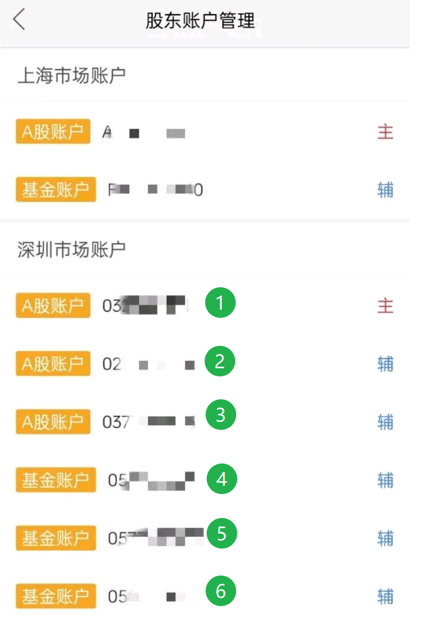 在【股东账户管理】界面里,如果可以查到深市有6个账户的时候(见下图),就说明1拖6就办好了。
