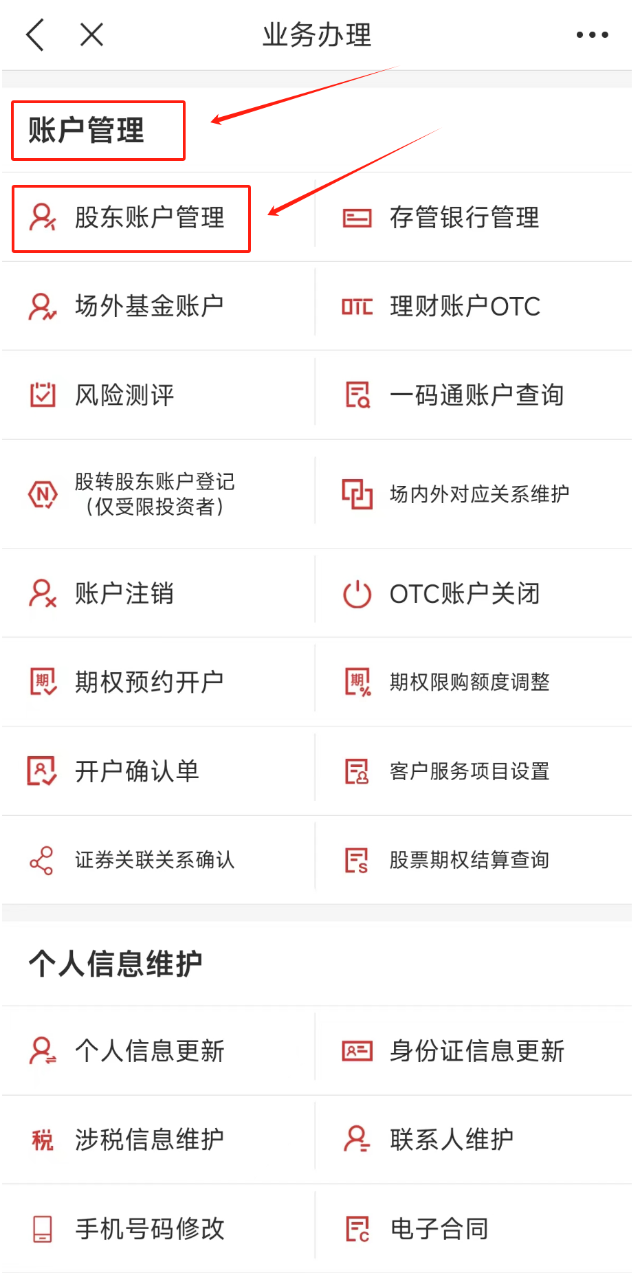 第2步:进入页面,找到「账户管理」-「股东账户管理」