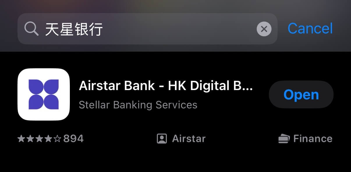 苹果用户在AppStore搜索 "天星银行",找到 "Airstar Bank" 这个App下载。。