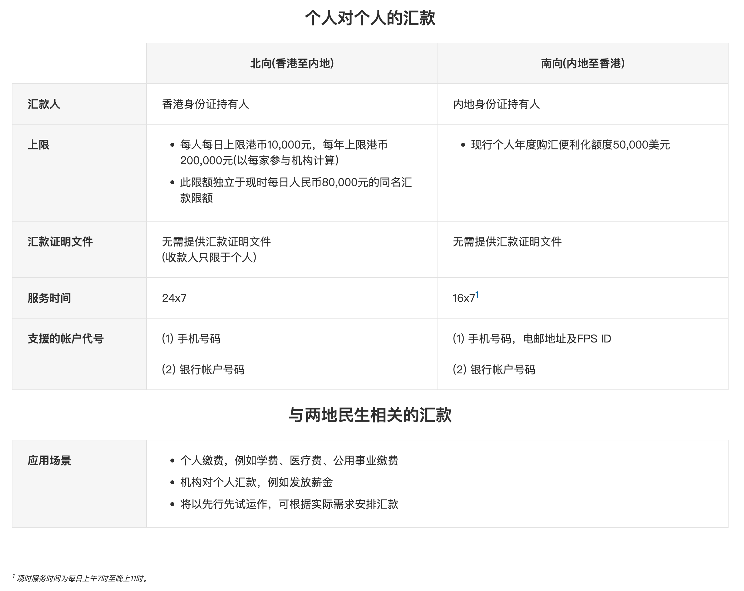 - 汇款额度: 单日1万港币,全年累计20万港币;另外,仍然有每日8万人民币的同名账户汇款额度。