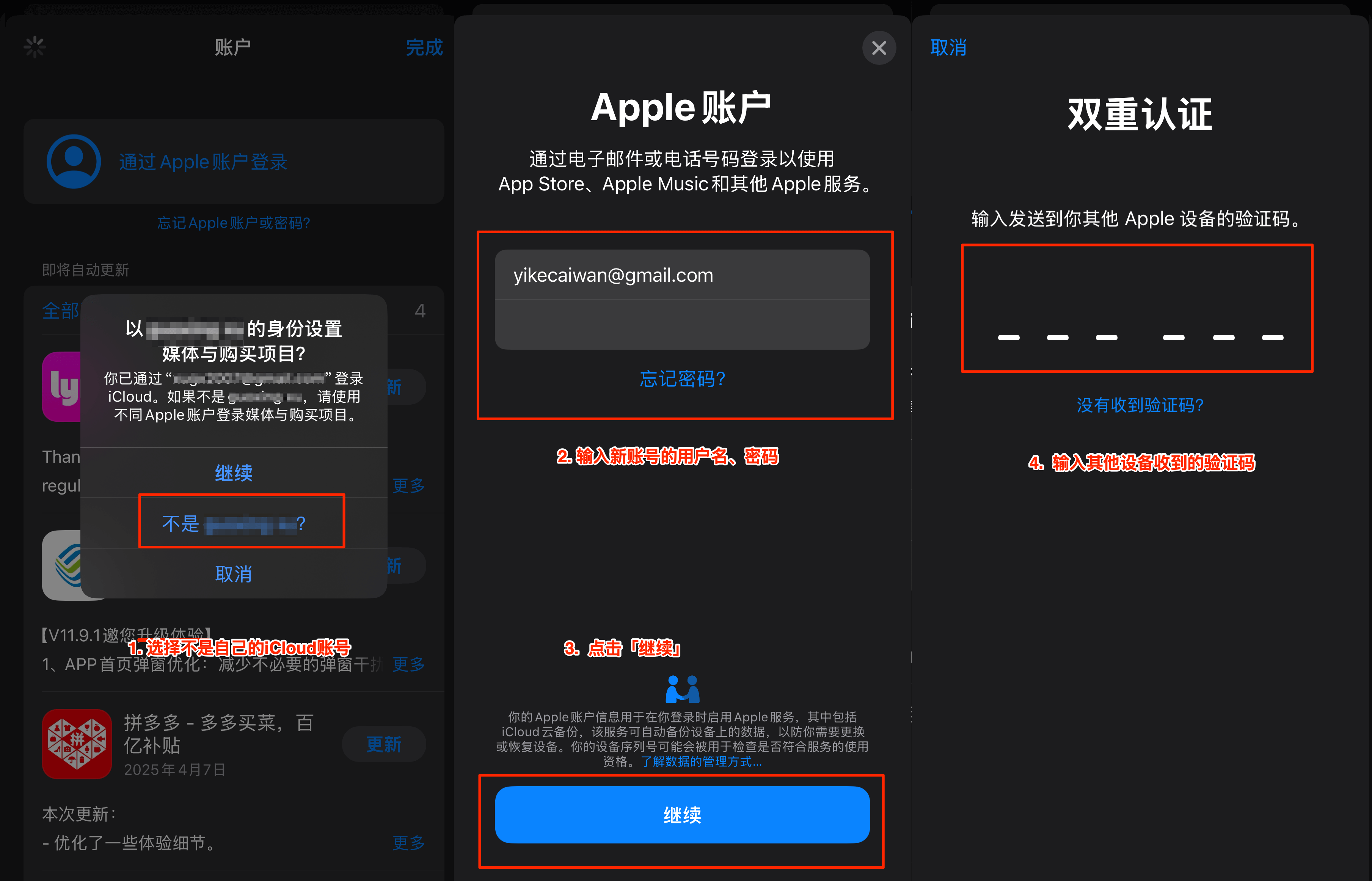 有一点不同是,在第5步弹窗中,直接选择「继续」就好,就会自动使用本机的iCloud账号登录,无需再输入账号和密码。