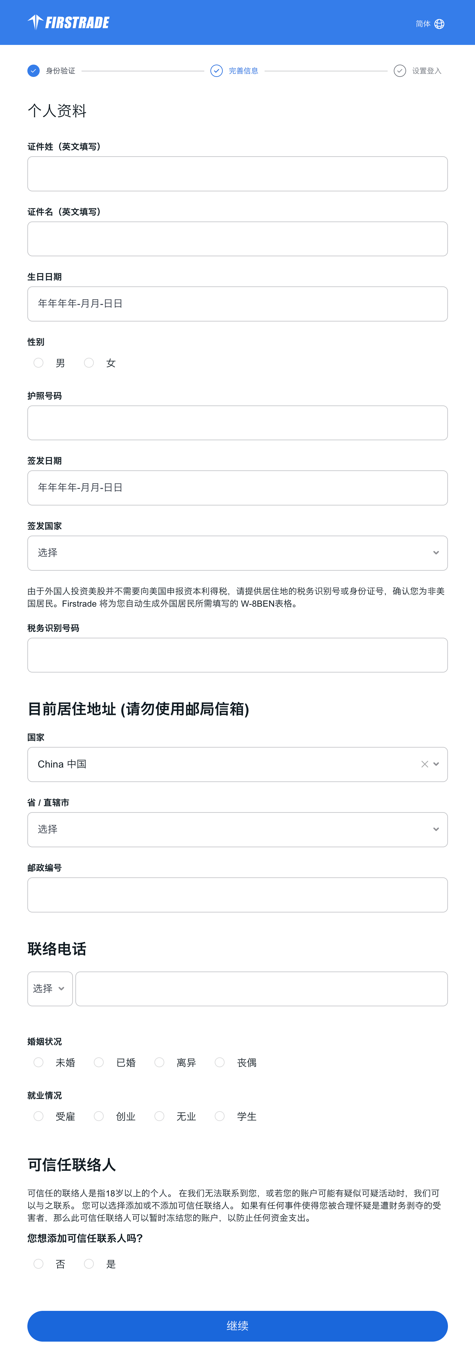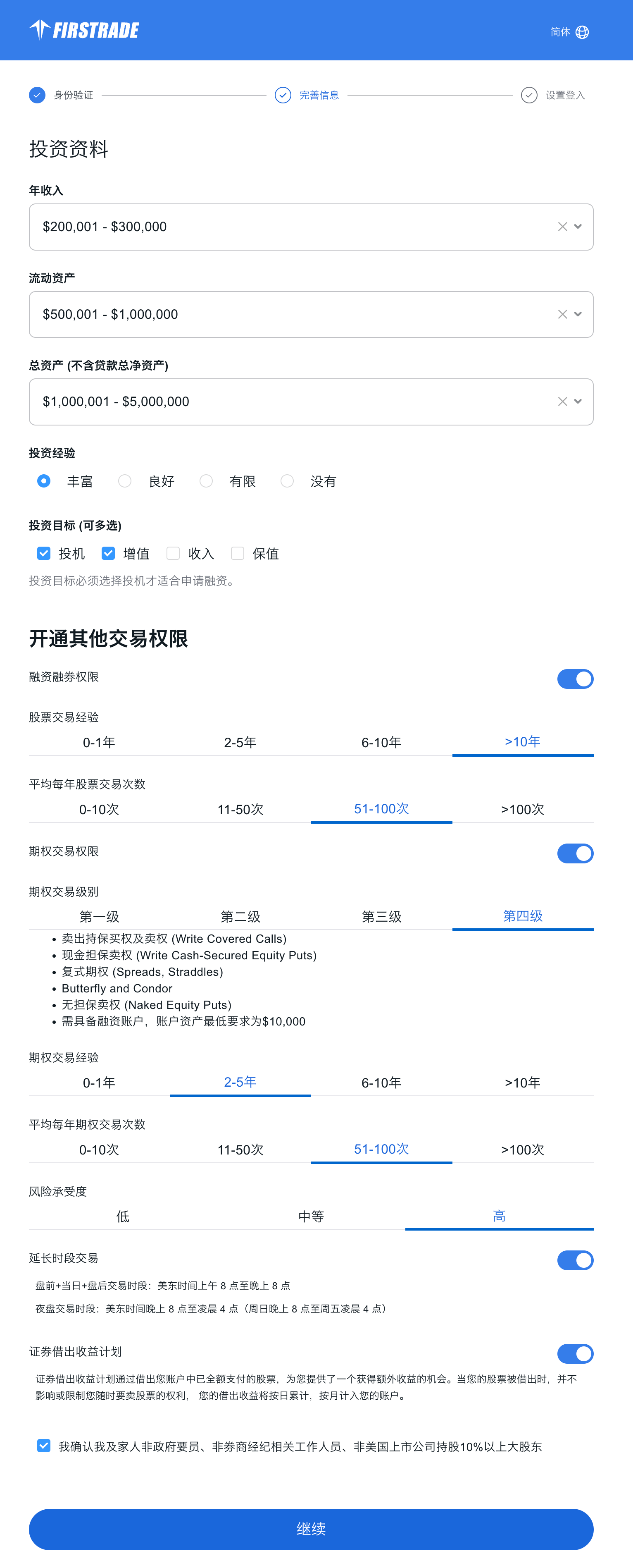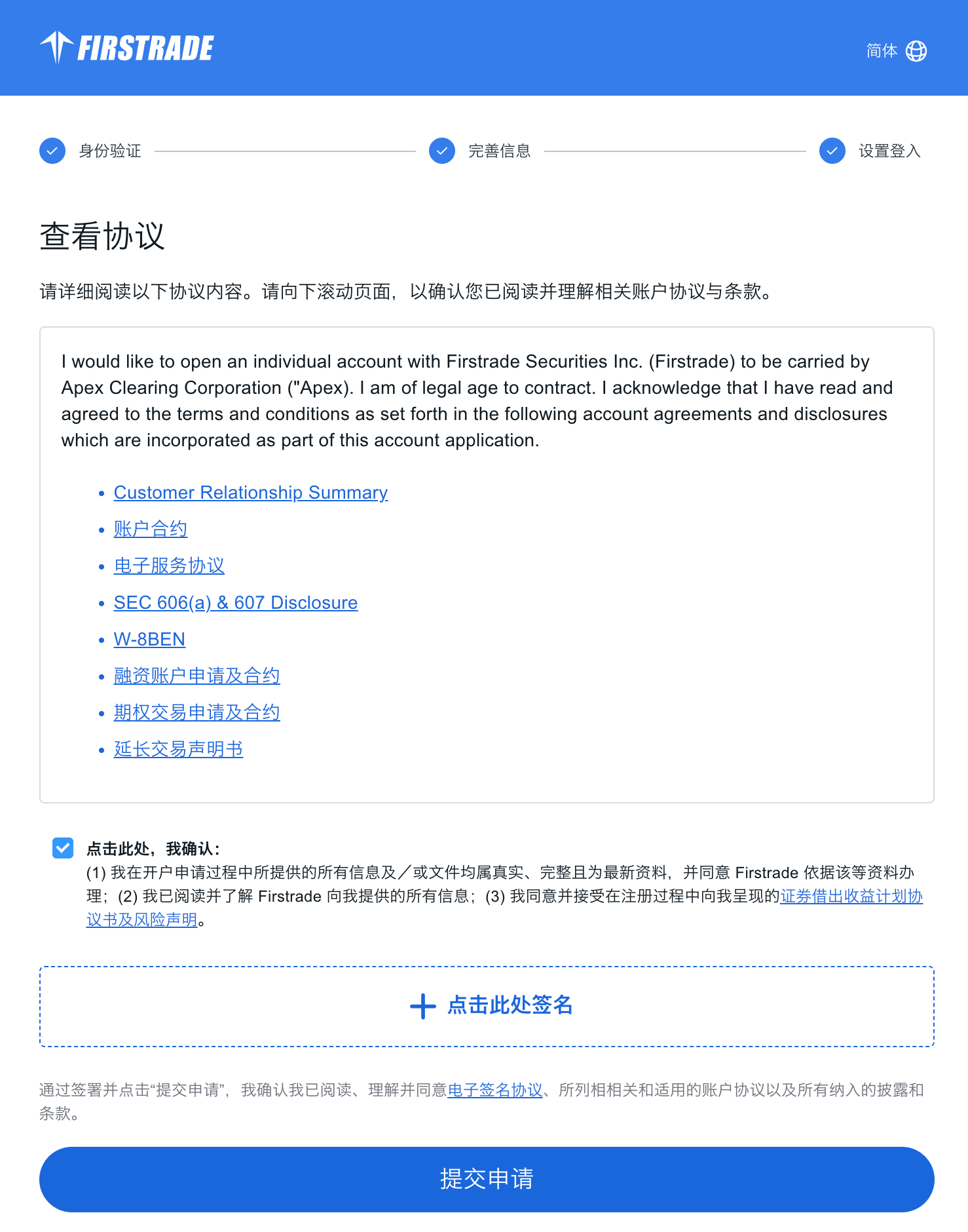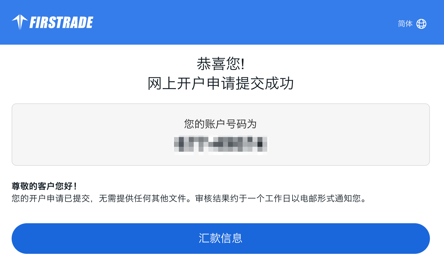 Firstrade的开户流程也很简单,在网站上提交申请,第二天就审核过了。
