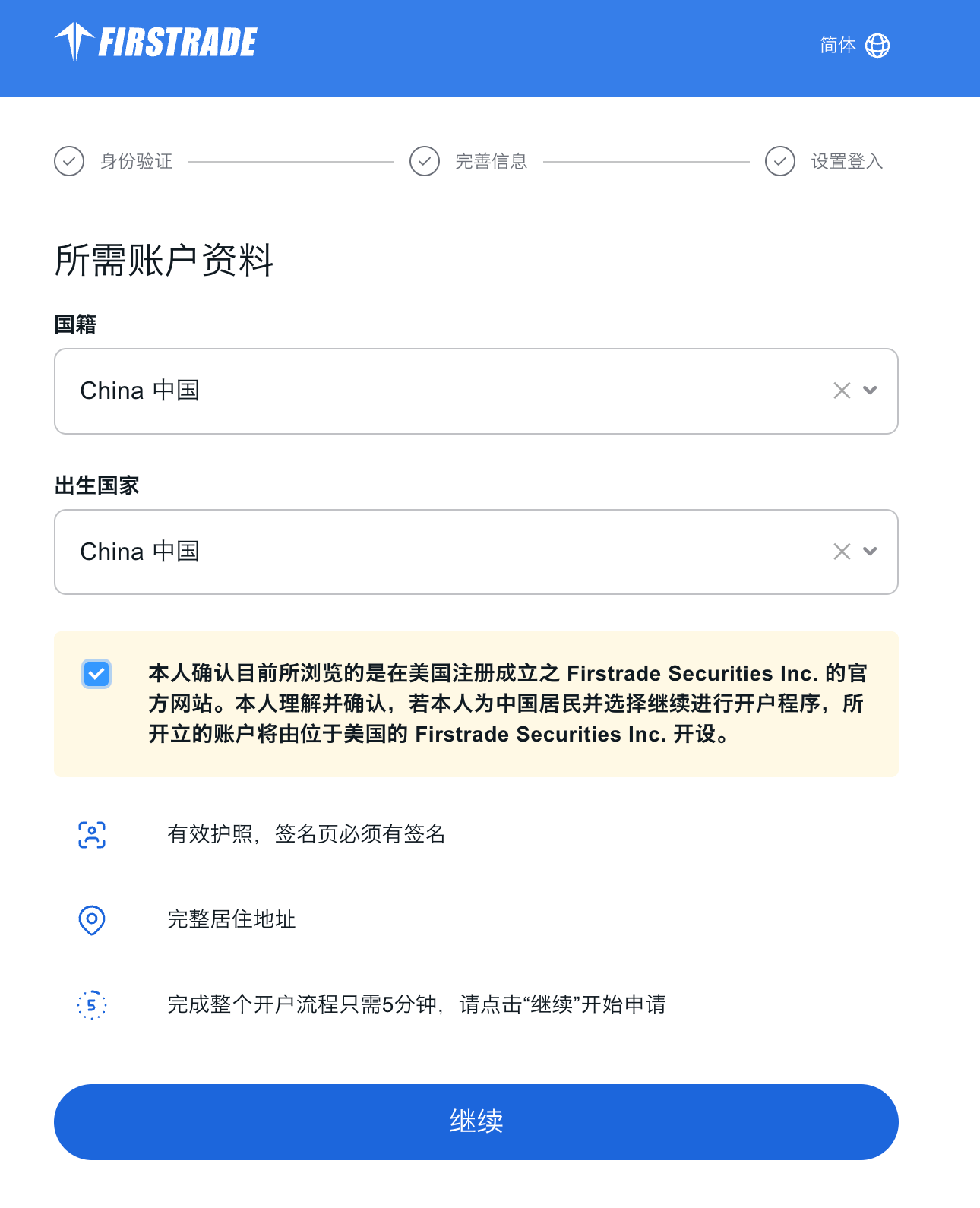 中国内地用户只要持有护照,就可以开美国第一证券(Firstrade)的账户,无需存量证明及海外工作生活证明。