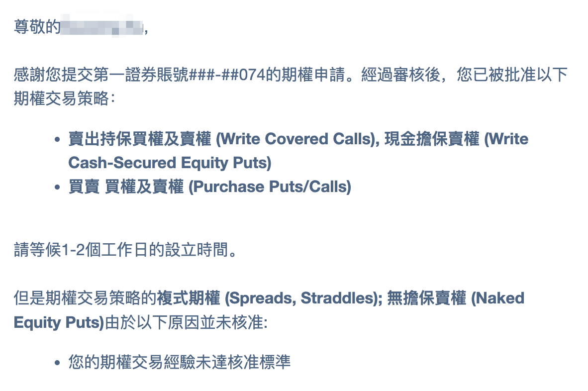 不过我申请的期权权限,并没有全部开,只开一部分,应该是我填的期权交易经验时间太短了。