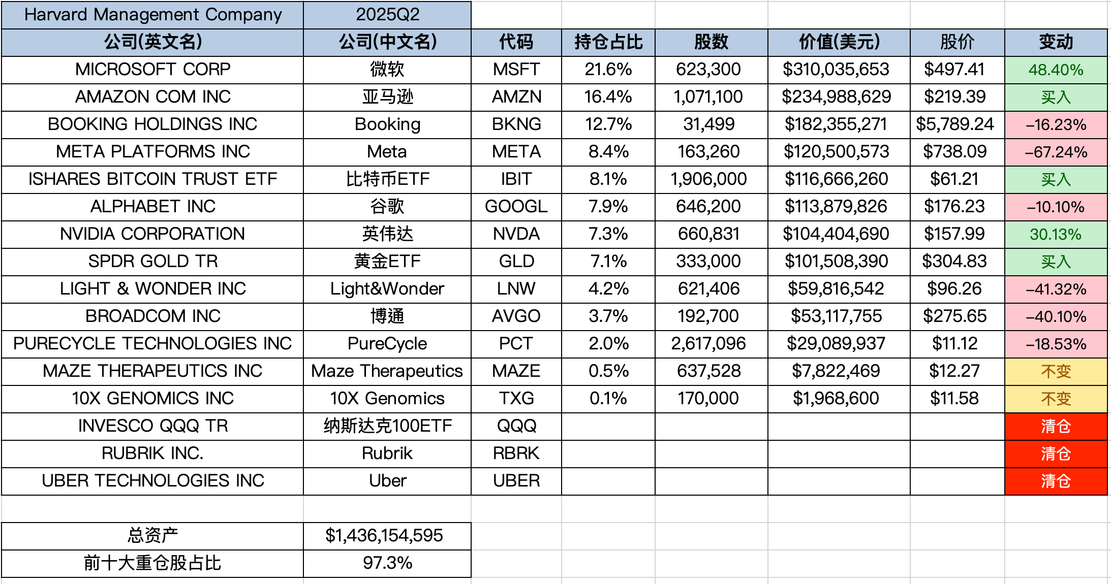 哈佛管理公司于2025年8月8日,向SEC提交了2025Q2美股的持仓报告,我们一起来看一下。
