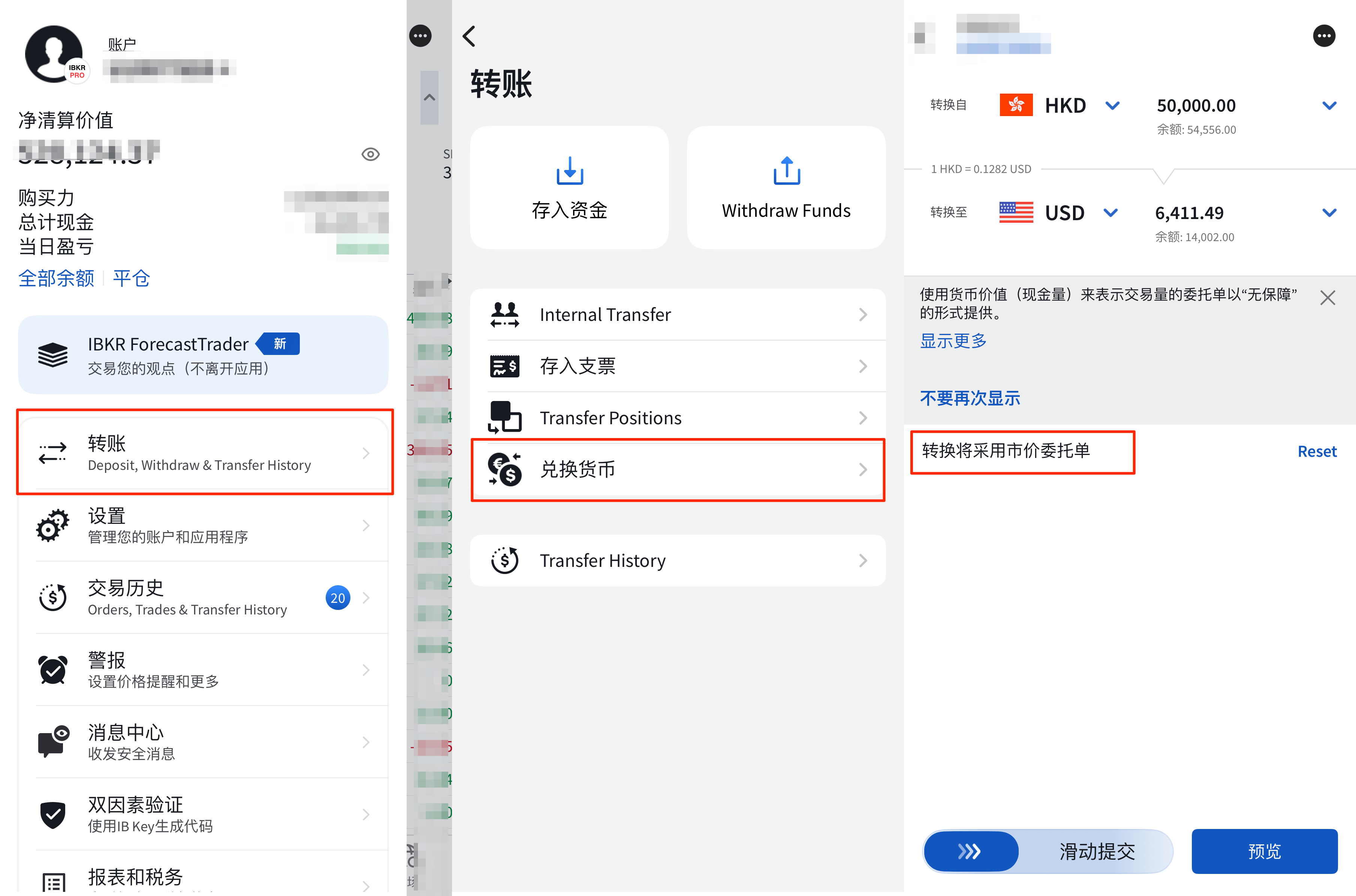 在盈透内换汇主要有两种方式: