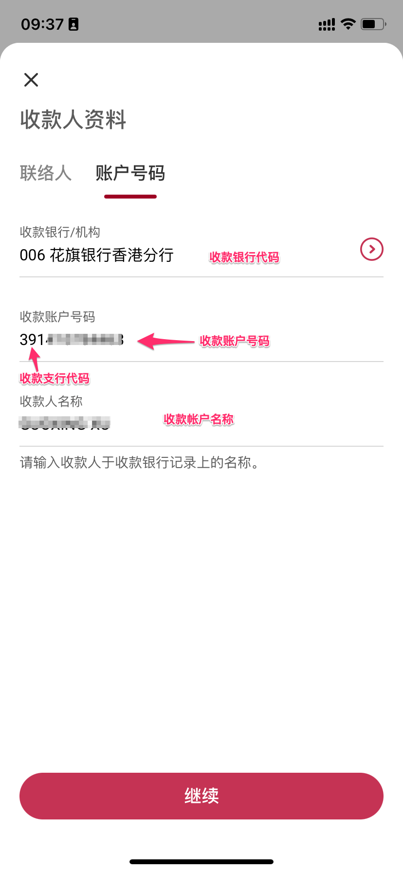 注意:因为我们是香港银行间转账,不需要用到SWIFT/BIC代码