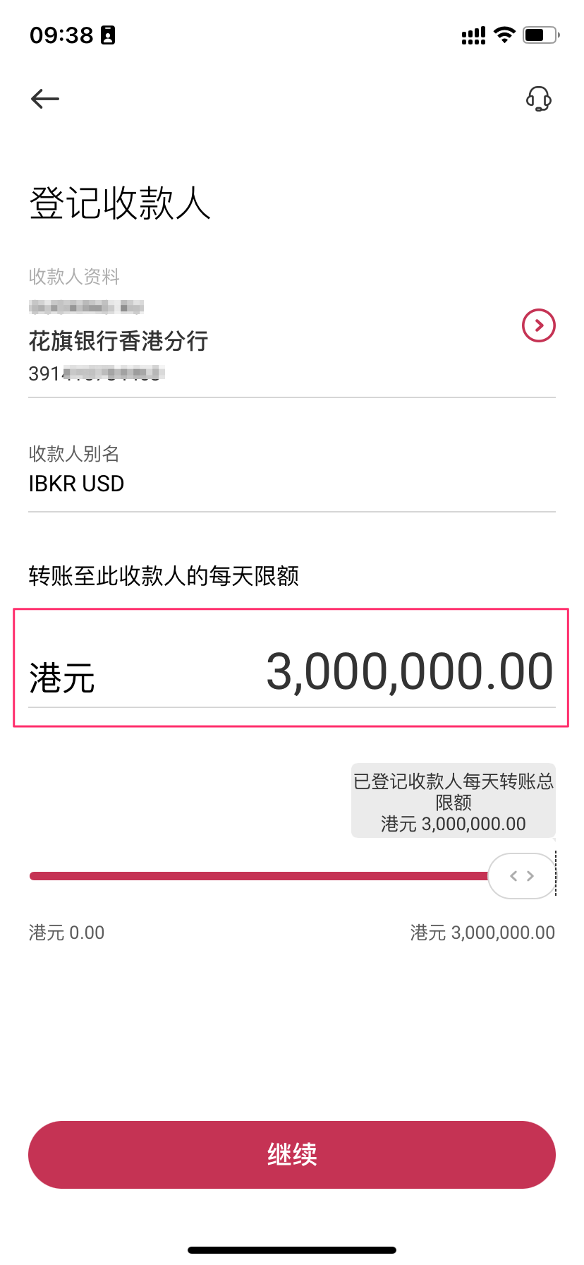 - 转账限额: 我们直接设到最大,每天300万港币。