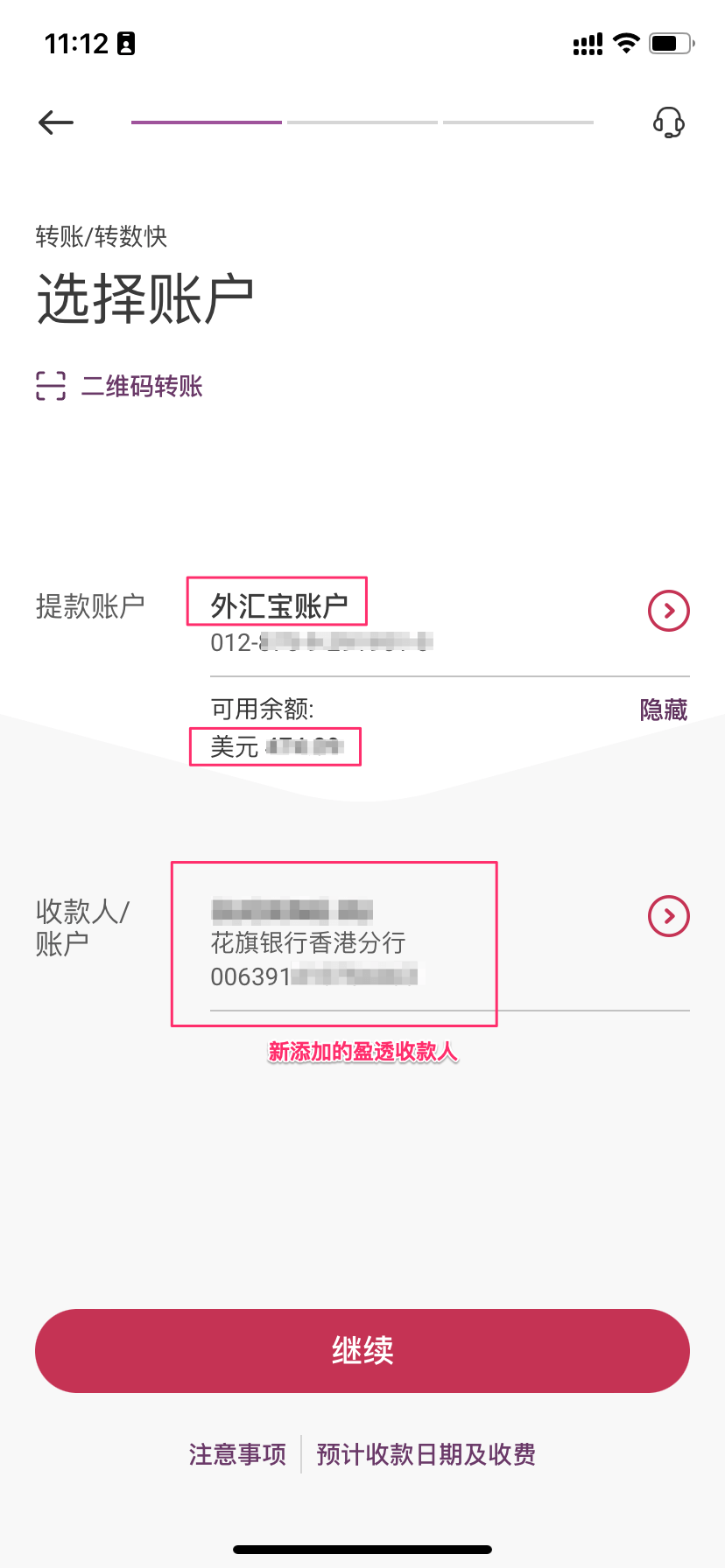 如果是首次向盈透汇款指令中的帐号入金,需要先在中银香港手机App上将这个帐号添加为收款人,才能转账。
