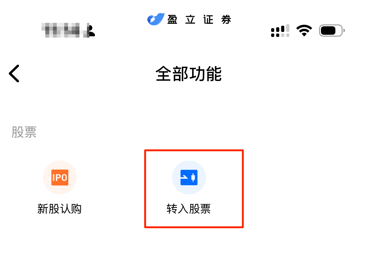1、转仓入口: 交易Tab > 更多 > 股票 > 转入股票。
