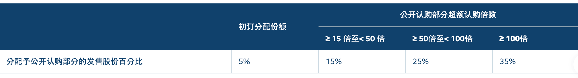机制A: 公开认购部分的指定分配比例如下(分配至公开认购部分的最大回拨百分比由原建议的20%上调至35%)。