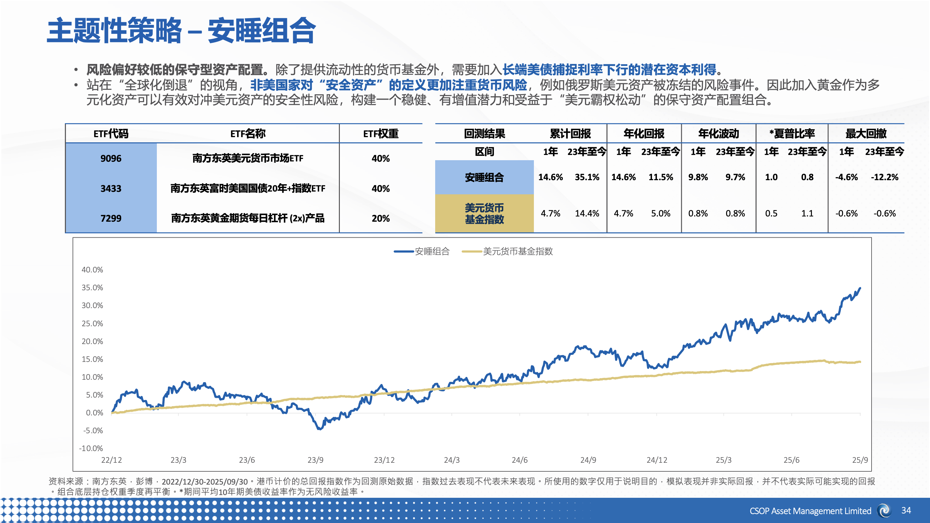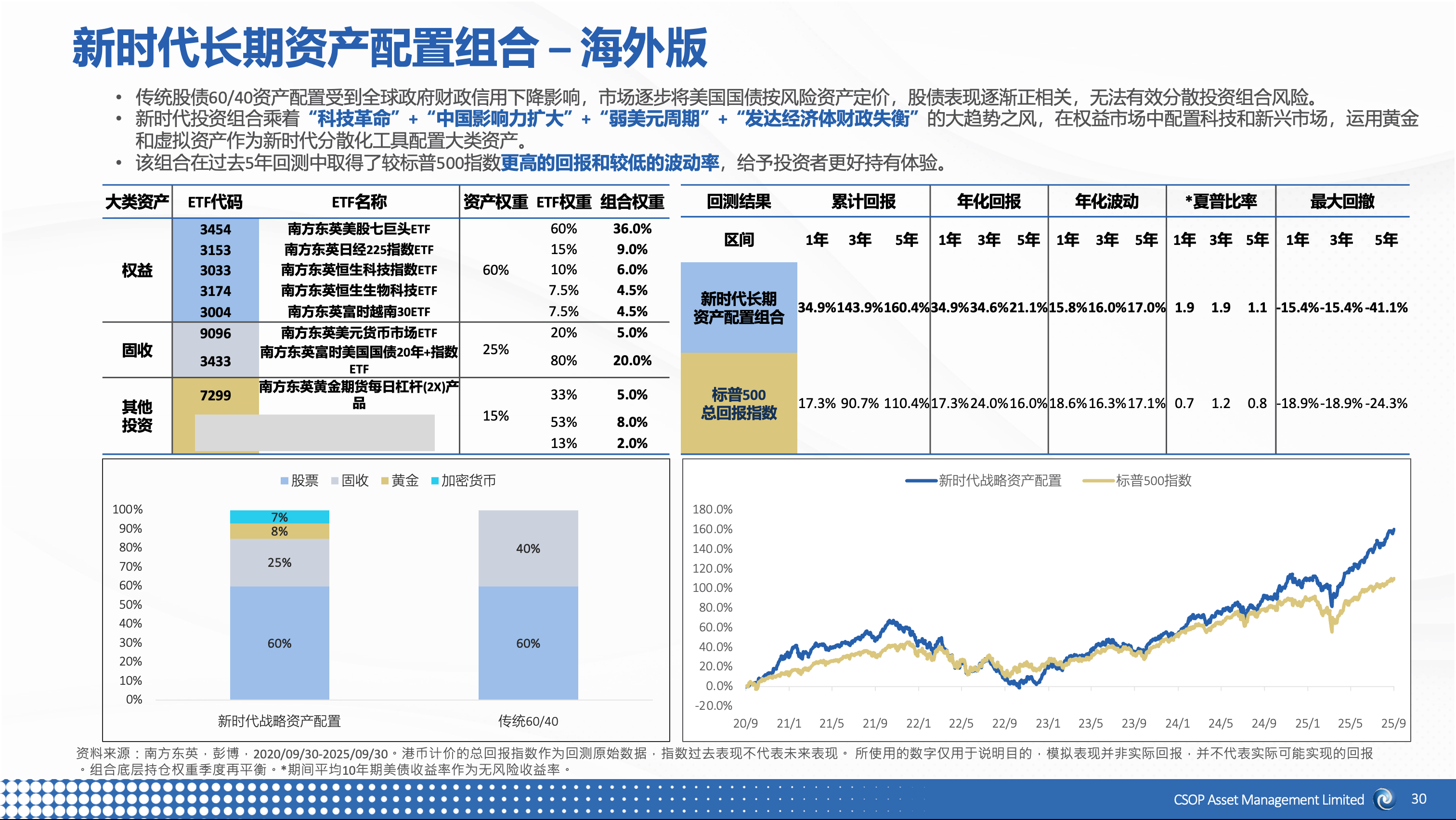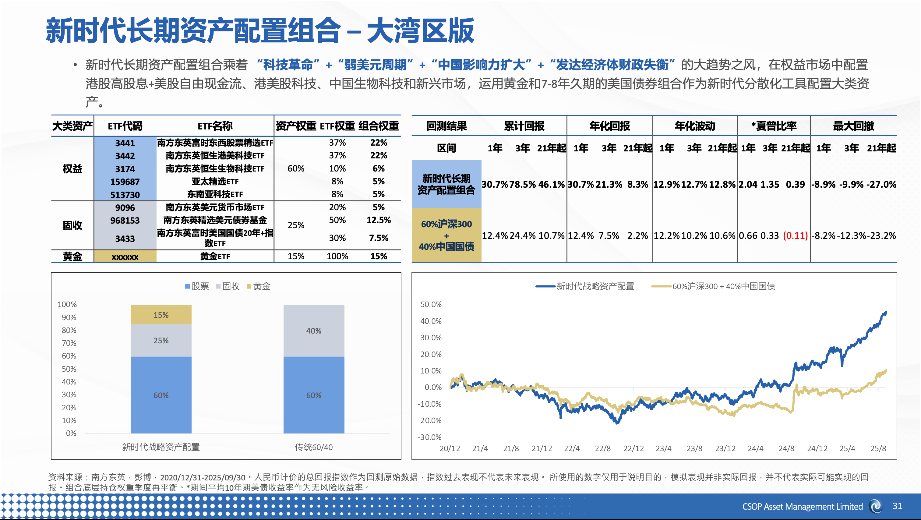 新的大类资产战略配置组合:过去60/40的股票/债券资产配置相关性波动放大,因此新时代的大类资产组合需要更多的低/负相关性资产来构建组合。