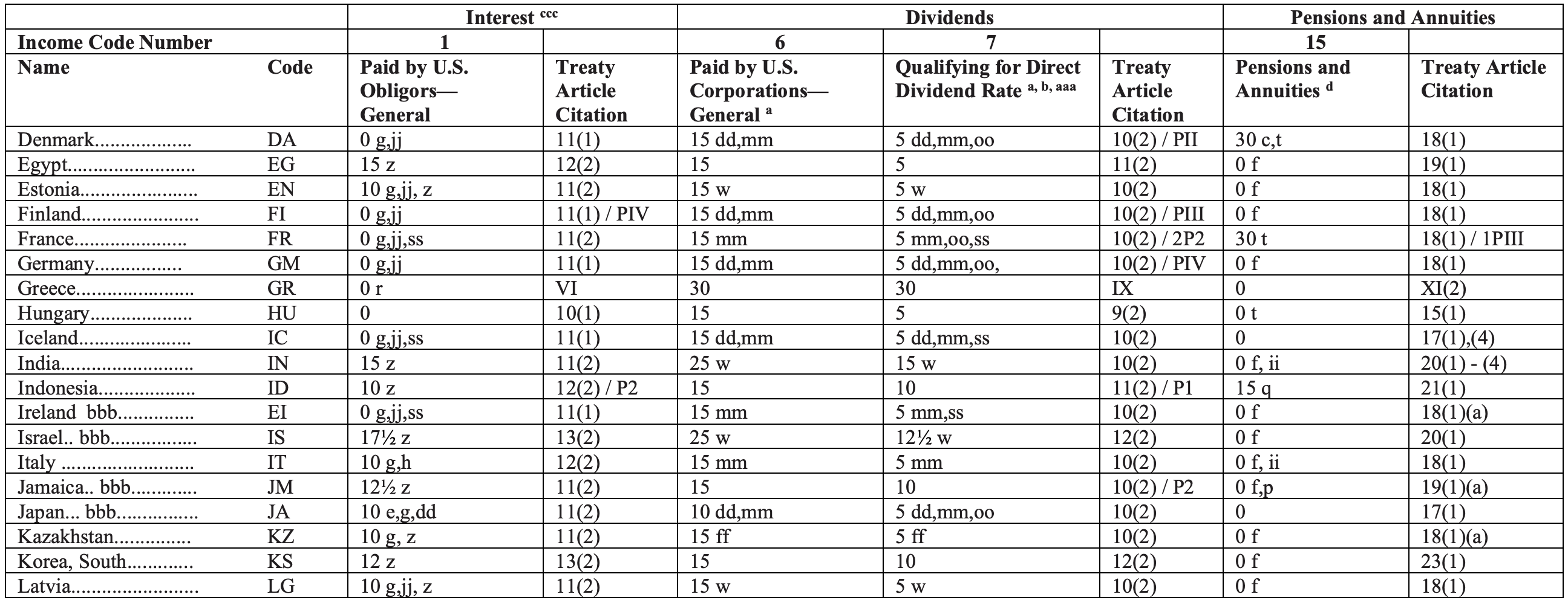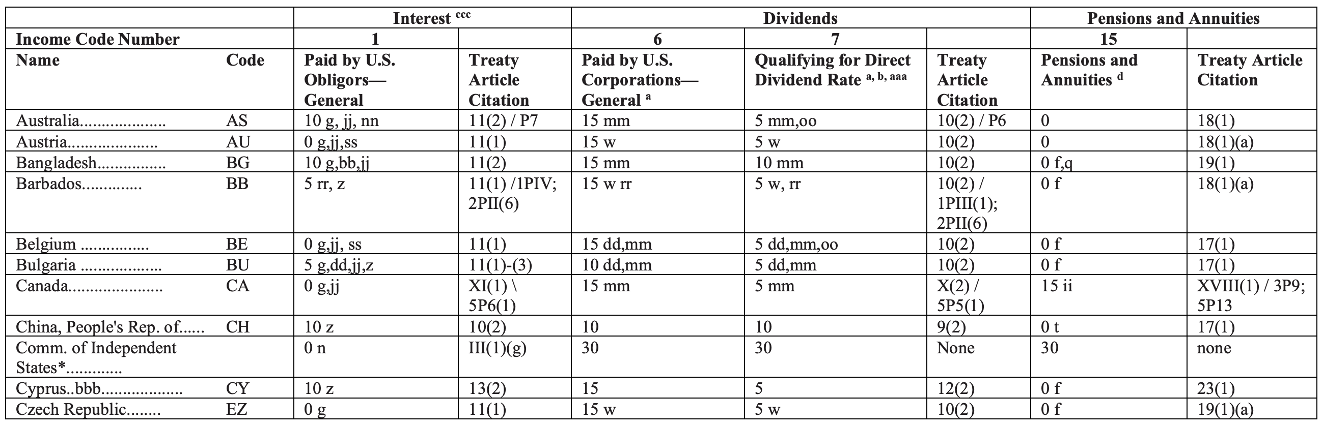 IRS Tax treaty tables