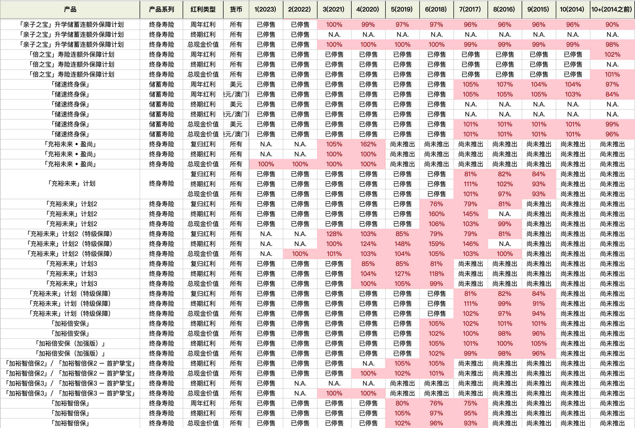 友邦分红险的实现率是比较稳健的,大部分实现率都在80% - 100%之间,还有很多实现率超过了100%。
