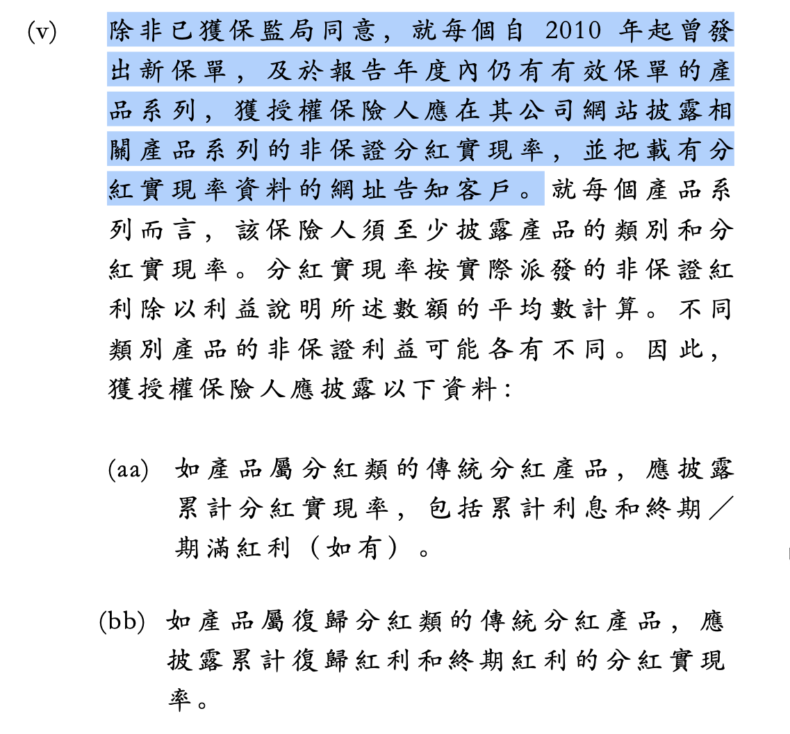 香港保监局要求香港的保险公司,公布过去销售的保单,非保证收益的实现情况,就是「分红实现率」。