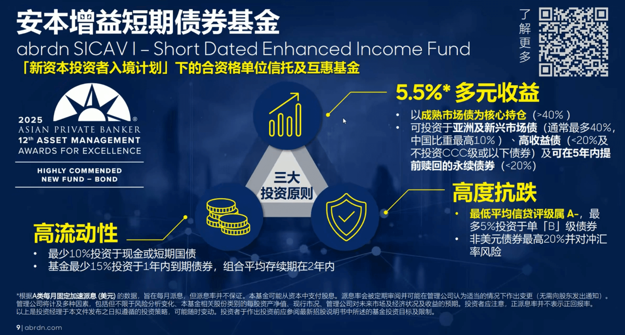 - 旨在每月派息(G类别美元分派 (每月)年度化派息率约9%) 派息率并不保证,股息可从资本中/实际上从资本中派发。