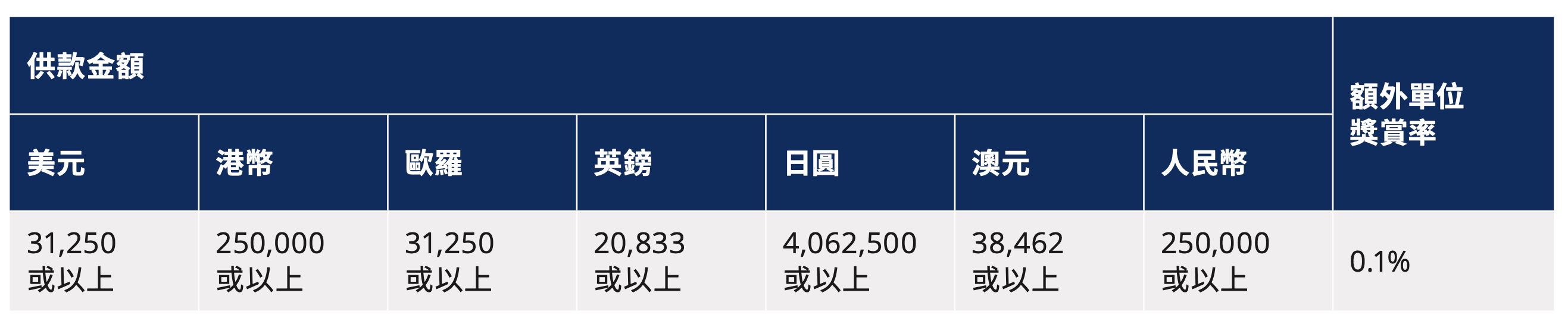 账户生效第6年起,每年的最后一日,以「账户月平均价值」为基准派发长期客户奖赏 (前提是账户月平均价值超过31250美元或等值其他货币)。