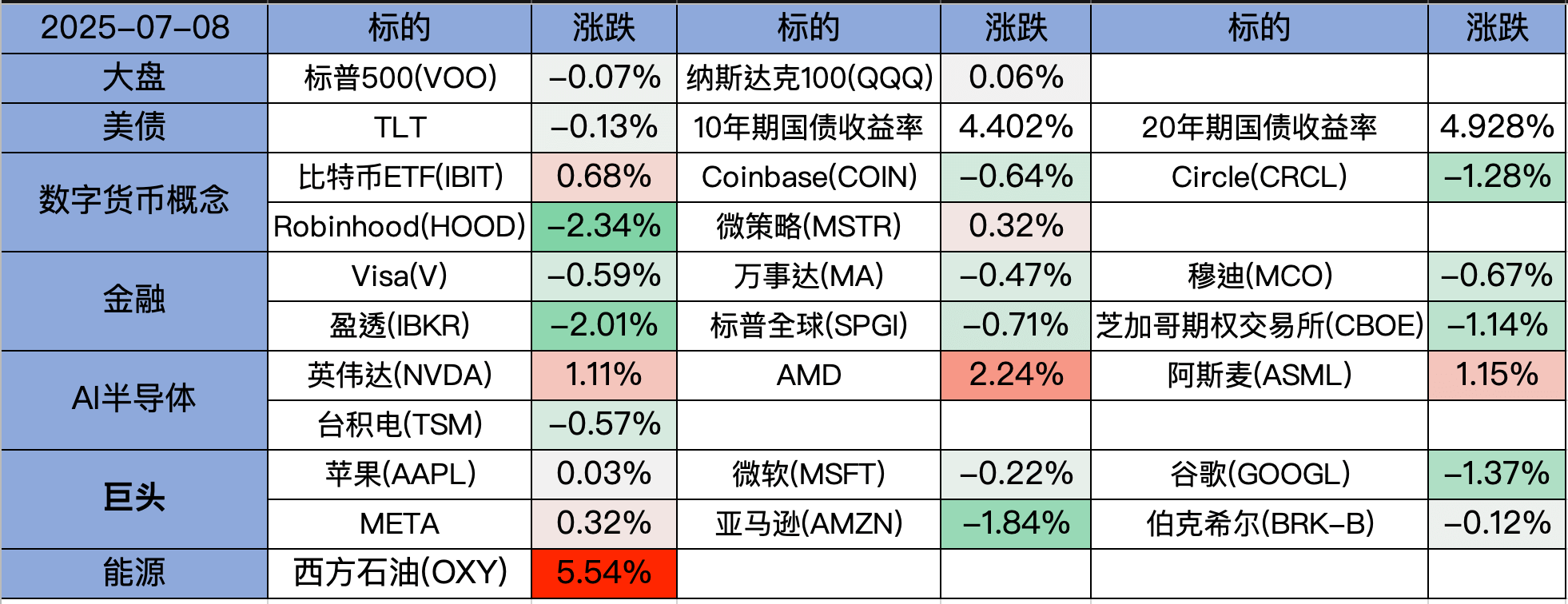 1、市场对关税似乎免疫,美股小幅波动,美债微跌,20年期收益率维持在4.9%。