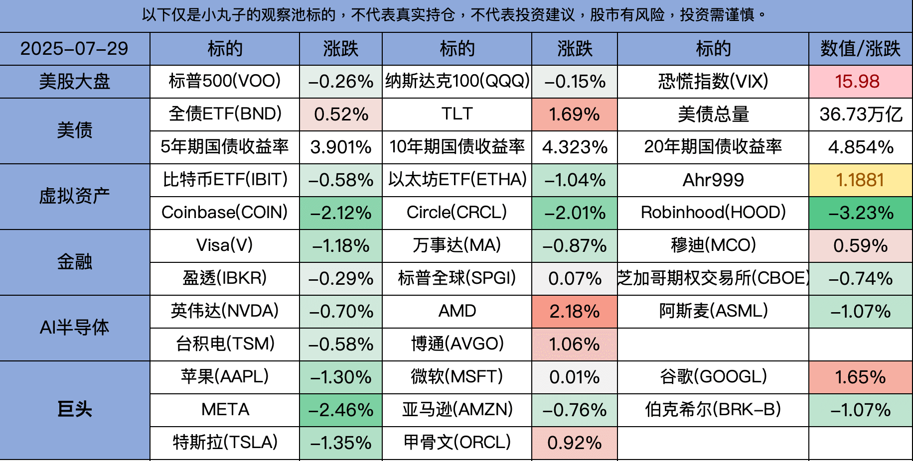明天凌晨,美联储要给出7月份的利率决议了,然后明天凌晨,美股盘后还有Meta和微软的财报,后天凌晨盘后有亚马逊和苹果的财报。