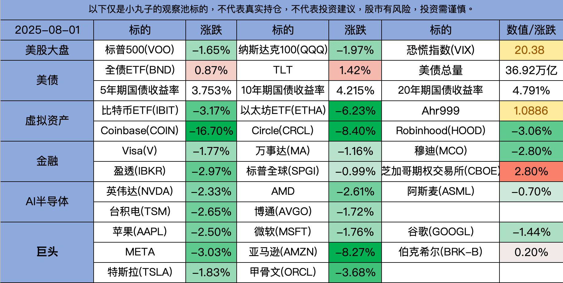 #丸子早上看美股#2025-08-01