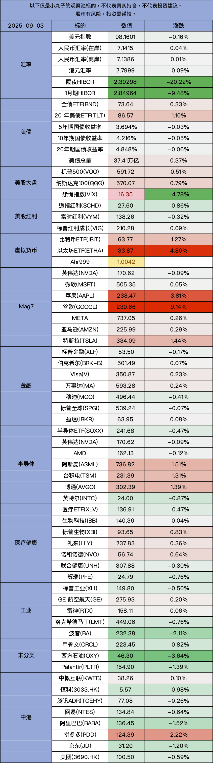 3、法院裁决 Google 不必出售 Chrome, 和苹果的搜索引擎合作协议可以继续保留,Google大涨9.14%,和苹果上涨3.81%。