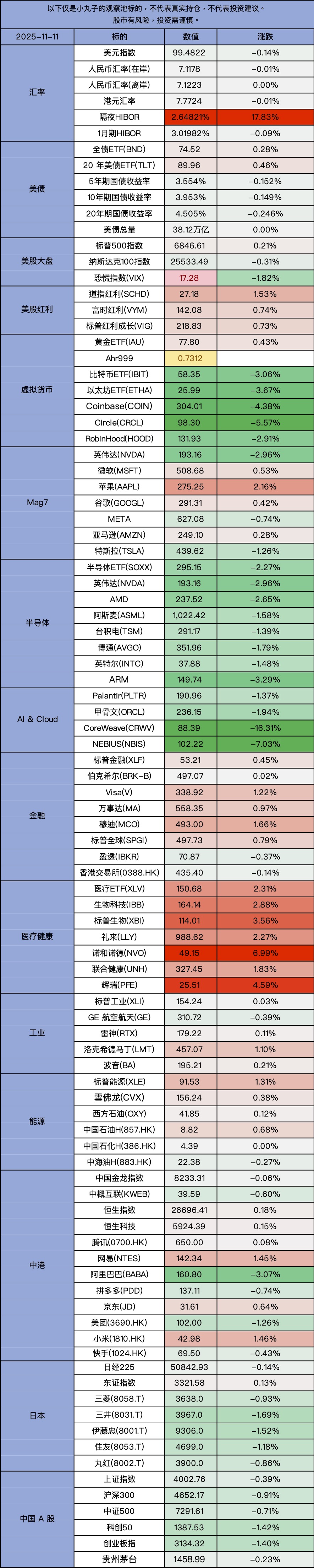 CoreWeave财报展望不及预期,下跌16.31%;Nebius财报公布了和Meta的的30亿美元云计算协议,也下跌了7.03%。