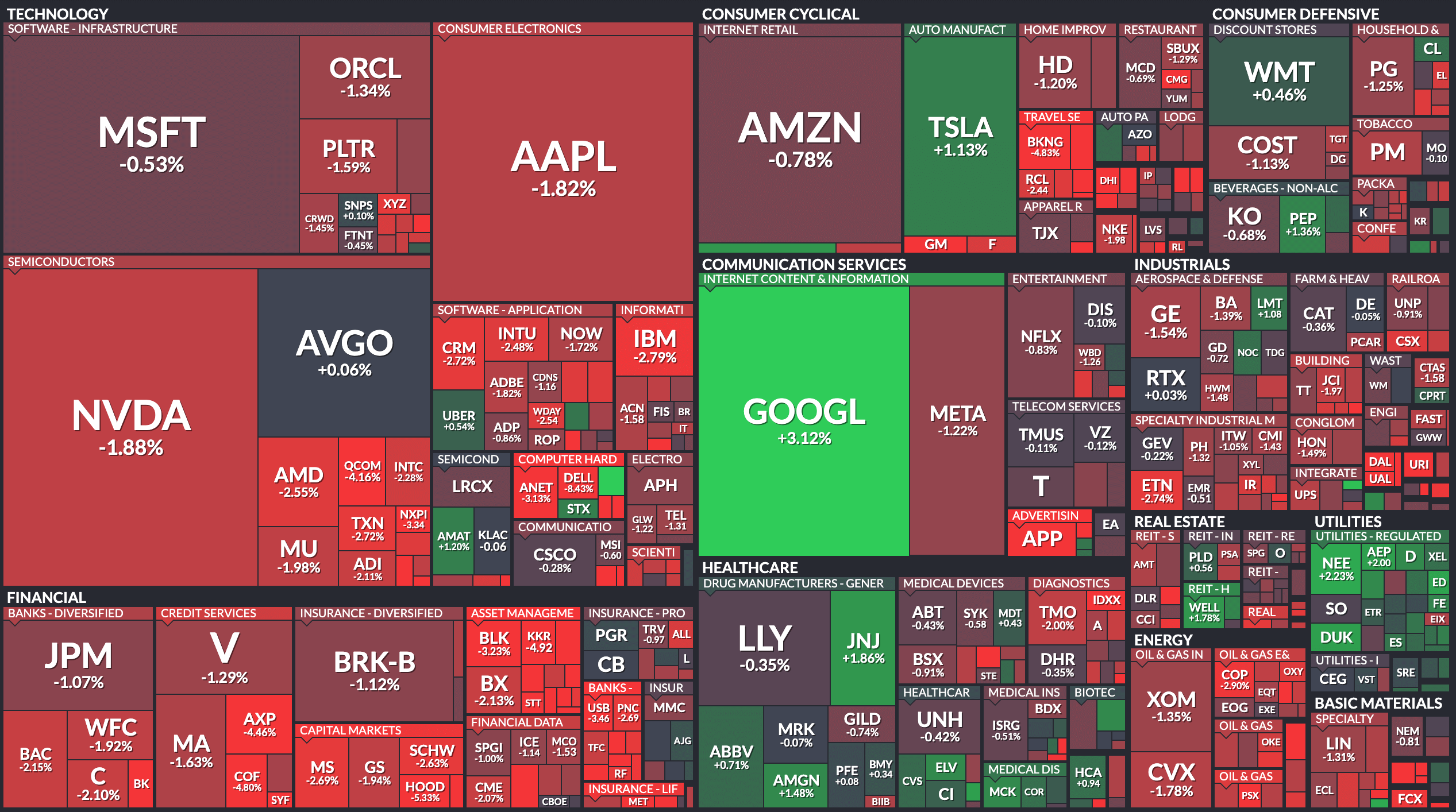 标普500指数下跌0.92%,纳斯达克100下跌0.83%。