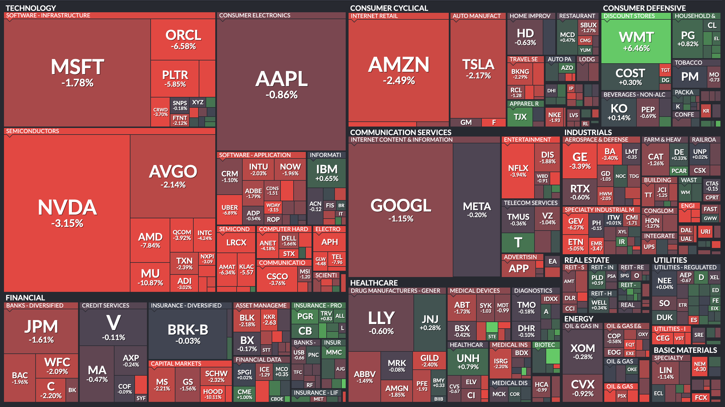 看了下新闻,也没发现什么特别的,无非是说美联储不降息了,或者说科技股估值太高了,AI变现前景堪忧。