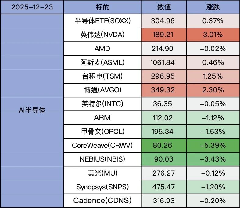 半导体ETF(SOXX)上涨了0.37%,另一只半导体ETF(SMH)上涨了0.96%。