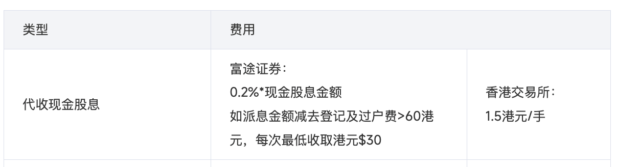 大家用港股券商收息的话,一定要注意股息费的问题;大部分港股券商对派息要收派息金额0.2%的股息费(最低30港币), 0.2%不算多,但算上最低30港币就很多了。