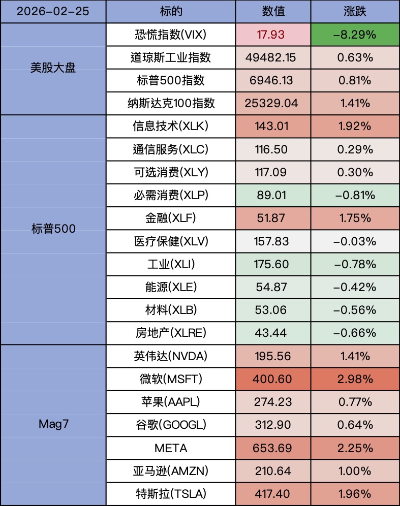 美股大盘上涨,道琼斯指数上涨0.63%,标普500指数上涨0.81%,纳斯达克100上涨1.41%。