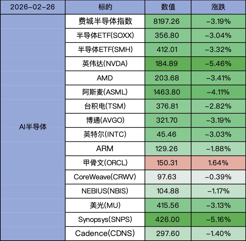 1、市场好难猜,英伟达业绩炸裂财报后,股票下跌5%,同时带崩半导体指数,SMH下跌3.32%。