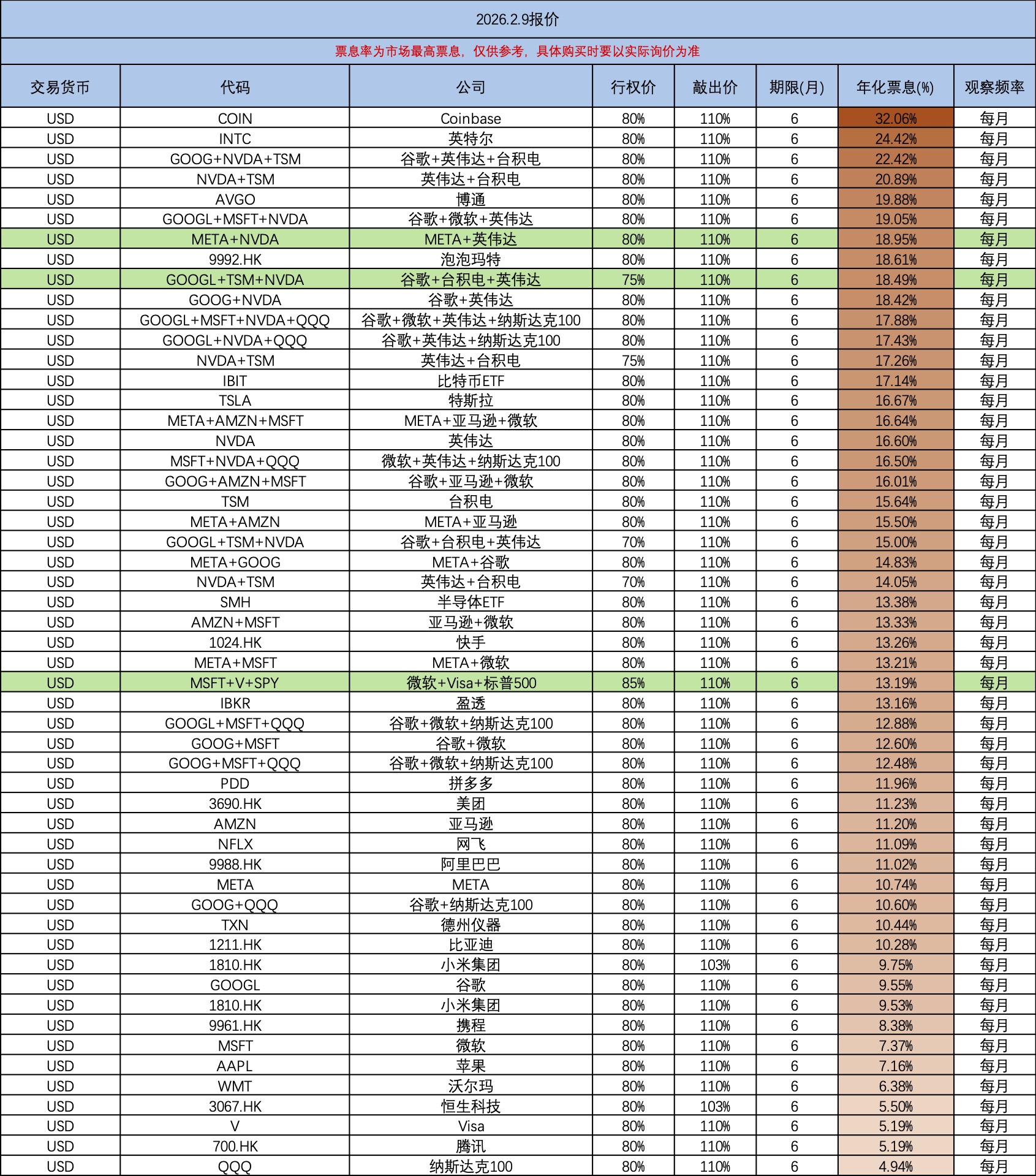 昨天FCN的票息,同样的标的,同样的执行价,票息比前一段时间普遍高个1%-2%,非常好的价格。