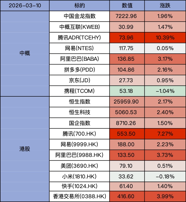 #日报# 腾讯ADR大涨10%;美股大盘微跌,恐慌指数维持高位;甲骨文发财报,盘后上涨8.7%